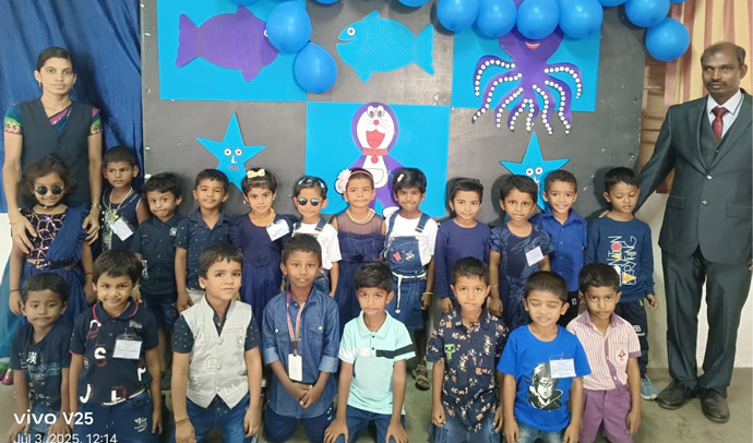 The Kindergarten curriculum focuses on foundational learning through play-way and activity-based methods. Emphasis is placed on language development, basic numeracy, motor skills, creativity, and social interaction. The learning environment is designed to make education enjoyable and engaging for young learners.